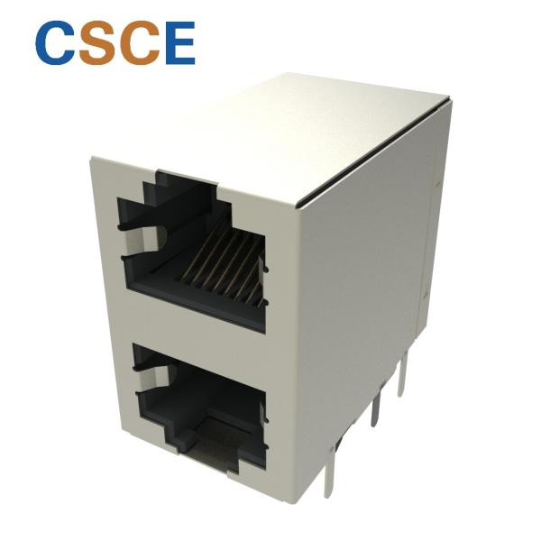Stacked RJ45 Connector 8P8C Modular Jack PCB Ethernet 2x1 Port RJ45 Connector